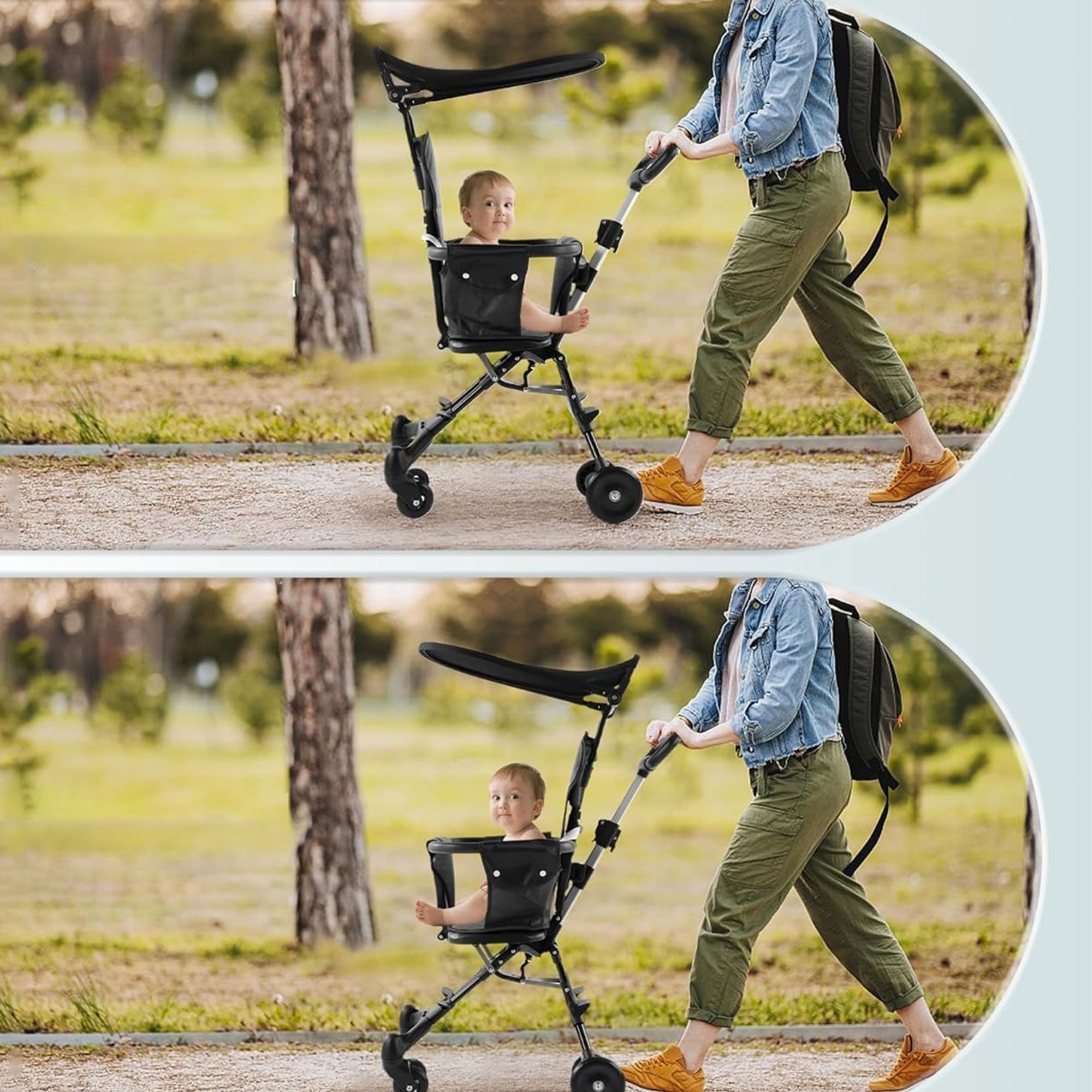 مقبضها يتعدل على مستويين عشان يكون مريح للأم والأب.